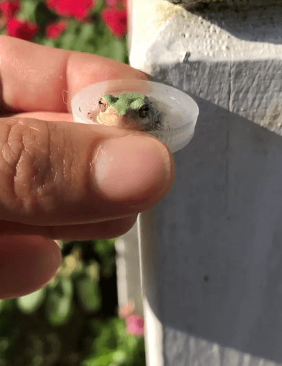 相信對於小小的樹蛙來說,石縫與瓶蓋的距離就像懸崖峭壁,但是牠還是相信了人類的善意呢!感謝這位熱心的網友,他的善意拯救了可能身陷中暑危險的樹蛙,希望更多的人們可以留意到弱小生命的需要。