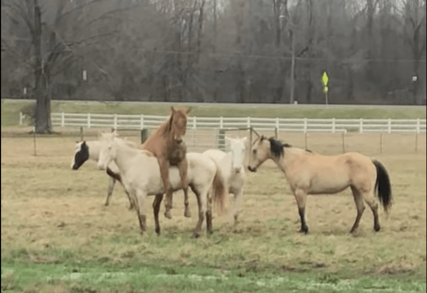 這絕對是「種馬生」的黑歷史!一隻肯塔基州卡爾弗特城(Calvert City)的年輕種馬Zip My Goose,偷偷跑到母馬群想交配,沒經驗的牠立刻騎上母馬,以為可以順利「偷桃」,沒想到全程被主人拍下來,不僅被發現…那方向好像也不太對?